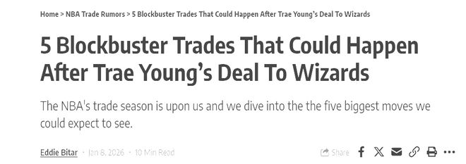 距離NBA交易截止日僅剩一個(gè)月,聯(lián)盟格局已因一筆重磅交易提前震動(dòng)——特雷·楊遠(yuǎn)赴華盛頓的交易,成為本賽季常規(guī)賽迄今為止最具影響力的陣容調(diào)整。在NBA聯(lián)盟,頂級(jí)球星的流動(dòng)往往會(huì)產(chǎn)生“滾動(dòng)效應(yīng)”,如同多米諾骨牌般引發(fā)連鎖反應(yīng)。特雷·楊的離隊(duì)不僅重塑了老鷹與奇才的核心框架,也讓多支球隊(duì)看到了通過(guò)交易突破瓶頸的可能。目前,聯(lián)盟中多支球隊(duì)正處于陣容調(diào)整的關(guān)鍵節(jié)點(diǎn),部分球隊(duì)的明星球員與未來(lái)發(fā)展模式存在分歧,這也為后續(xù)交易埋下了伏筆。據(jù)美媒露天看臺(tái)的預(yù)測(cè),在特雷·楊交易之后,還有5筆足以改變聯(lián)盟格局的重磅交易有望在截止日前達(dá)成,涉及揚(yáng)尼斯·安特托昆博、安東尼·戴維斯等多位超級(jí)巨星。