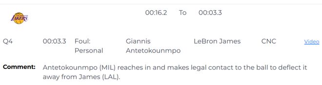 最后40.5秒,字母哥對(duì)詹姆斯的上籃嘗試進(jìn)行了合法封蓋。(注:報(bào)告上沒(méi)有提到打到詹姆斯手的特納)