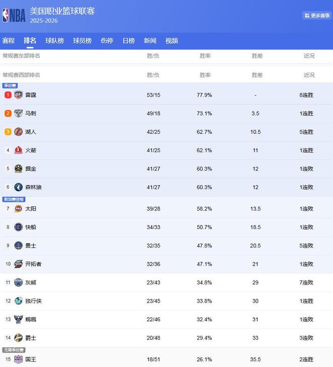 NBA25-26賽季正在火熱進(jìn)行中,而打到現(xiàn)在,各支球隊的成功都在15以內(nèi)了,排名上的爭奪也是陷入了白熱化,打得好,球隊排名提升,打得不好,排名下降,失去季后賽的有力對陣形勢,所以這對于各支隊伍來說都很重要,競爭也是變得更加激烈,導(dǎo)致NBA排名大變臉:火箭湖人搶第3,3隊爭西部第5,騎士隊第4難保!