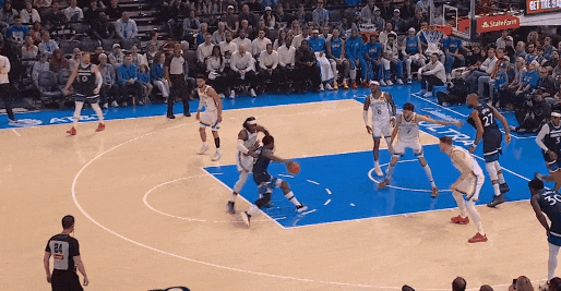 引華茲和蘭德爾雙人上線,卡魯索假擋真順下,亞歷山大單手揮傳,卡魯索上籃。