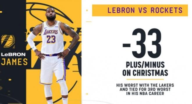 這不僅是他對陣杜蘭特生涯的正負值新低,同時也是加盟湖人以來,正負值最低的一場。