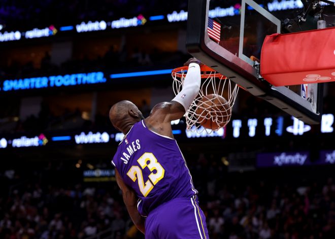至于末節(jié)決戰(zhàn)階段,詹姆斯繼續(xù)沖擊內(nèi)線持續(xù)得分,他攜手東契奇引領(lǐng)湖人逐步反超比分保持微弱領(lǐng)先優(yōu)勢(shì)。詹姆斯一度被小賈巴里-史密斯犯規(guī),導(dǎo)致手肘被摔到痛苦倒地,所幸詹姆斯并無(wú)大礙。