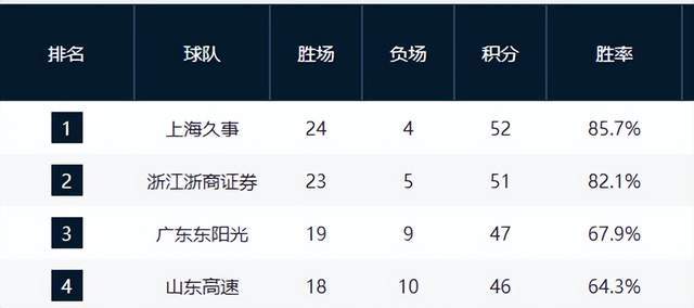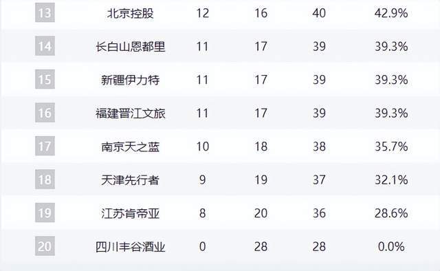 福建、同曦、天津、江蘇等隊仍在為最后一線生機拼殺,而四川隊至今未嘗勝績,0勝28負墊底,賽季已無懸念。