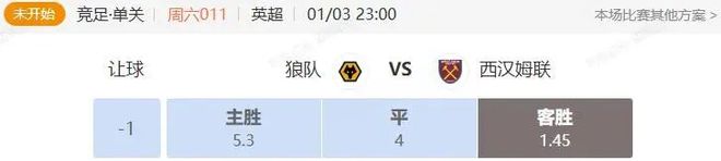 狼隊和西漢姆的這場英超對決,從兩隊近期的競技狀態(tài)來看,西漢姆客場拿下不敗的概率相當可觀。