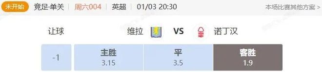 在這場比賽之前,阿斯頓維拉已經(jīng)主場10連勝,這是球隊近36年來最長的主場連勝戰(zhàn)績,但是在面對身處保級邊緣掙扎的諾丁漢森林時,市場數(shù)據(jù)開得很不樂觀。