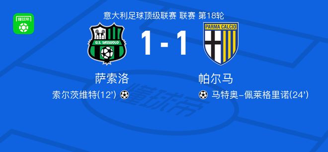 北京時(shí)間1月3日意大利足球頂級聯(lián)賽 聯(lián)賽 第18輪,薩索洛主場對陣帕爾馬。薩索洛索爾茨維特破門。帕爾馬馬特奧-佩萊格里諾破門。最終比分薩索洛 1-1 帕爾馬。