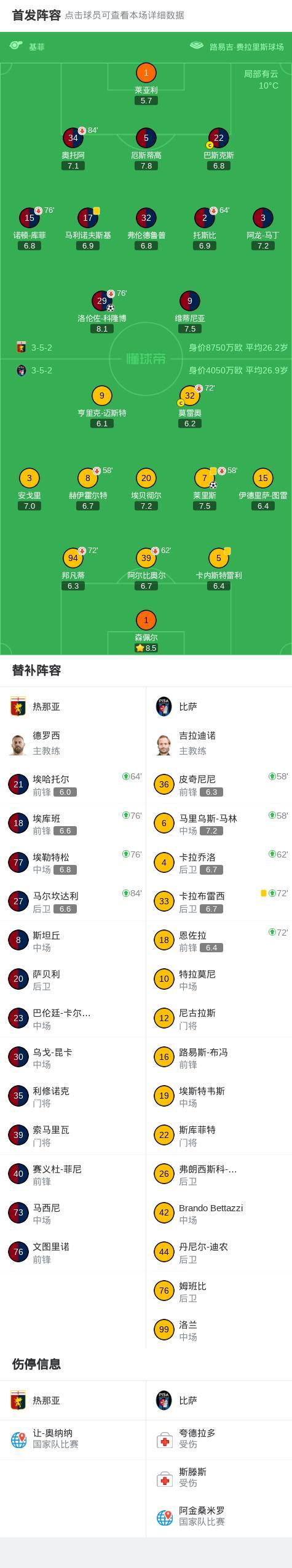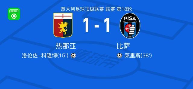 北京時(shí)間1月3日,意大利足球頂級(jí)聯(lián)賽第18輪,熱那亞主場(chǎng)迎戰(zhàn)比薩。比賽中,洛倫佐-科隆博為熱那亞率先破門,取得領(lǐng)先。隨后,萊里斯為比薩攻入一球,扳平比分。最終雙方以1比1握手言和。