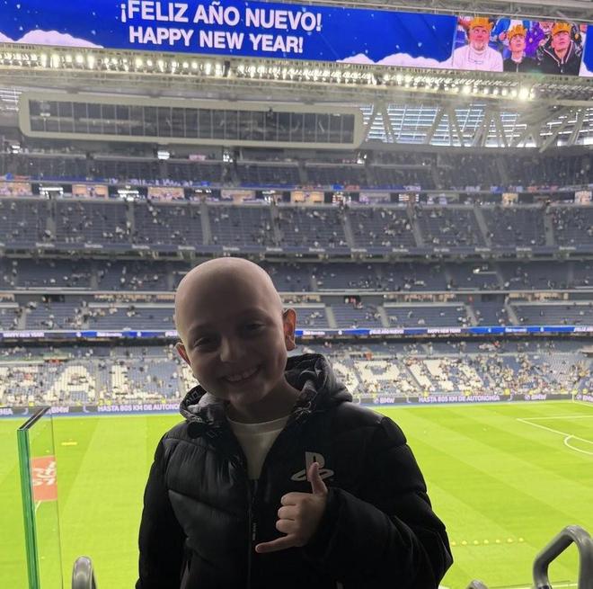 今天有一個孩子來到現(xiàn)場,他現(xiàn)在住在馬德里,但他是加那利人,他叫埃利亞斯(Elías),他長期與白血病作斗爭。在他來現(xiàn)場的這天我恰好進(jìn)球了,真好。