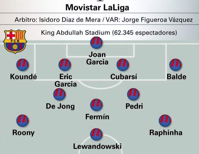 鋒線(xiàn)上,萊萬(wàn)出任中鋒,拉菲尼亞居左,小將魯尼-巴德吉踢右邊鋒。20歲的魯尼-巴德吉,本賽季13次代表巴薩出場(chǎng),貢獻(xiàn)1球2助。如果亞馬爾身體無(wú)礙,魯尼-巴德吉將讓出主力位置。