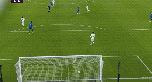 第41分鐘,希門尼斯回撤接球,史密斯·羅禁區(qū)外突施冷箭,皮球稍稍高出。
