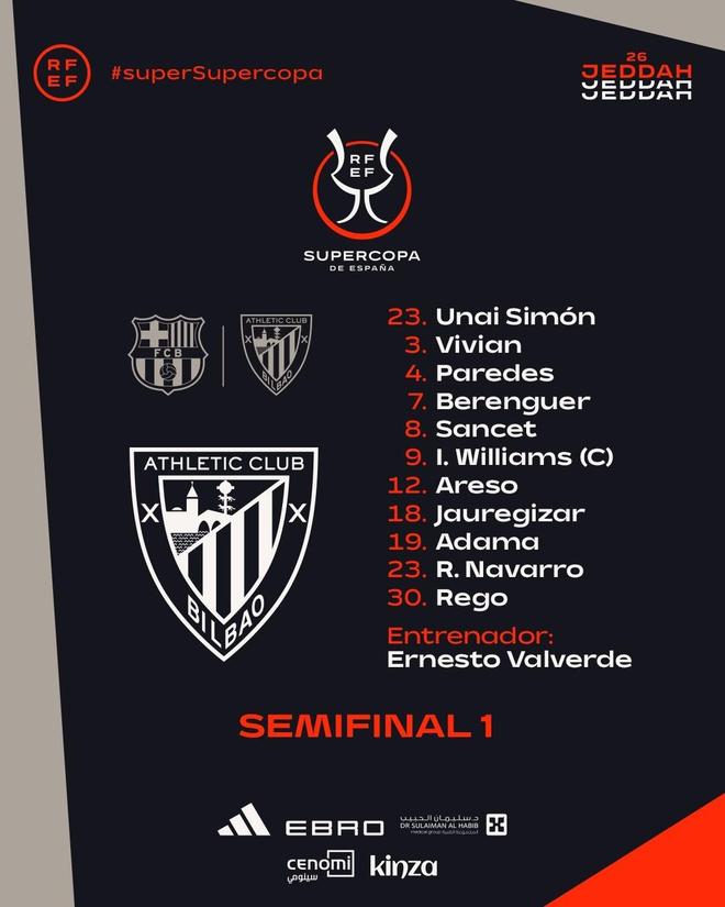 北京時間1月8日3:00,西超杯半決賽,巴薩對陣畢爾巴鄂競技。賽前首發(fā)公布。