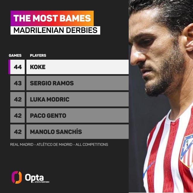 據(jù)統(tǒng)計,這使得科克超越前皇馬隊長拉莫斯,成為出戰(zhàn)馬德里德比次數(shù)最多的球員。