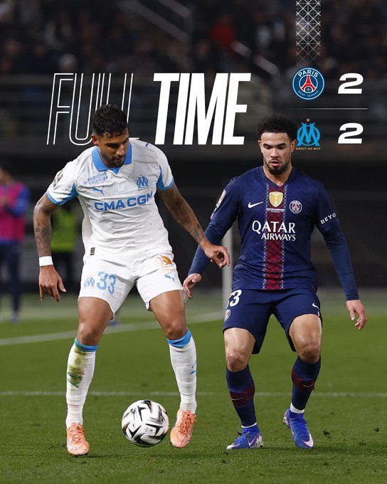 北京時(shí)間1月9日02:00,法國(guó)超級(jí)杯決賽,巴黎圣日耳曼在艾哈邁德國(guó)際體育場(chǎng)對(duì)陣馬賽。上半場(chǎng),維蒂尼亞助攻登貝萊破門。巴黎半場(chǎng)1-0領(lǐng)先馬賽。下半場(chǎng),舍瓦利耶送點(diǎn),格林伍德點(diǎn)射扳平,隨后帕喬打進(jìn)烏龍球,貢薩洛-拉莫斯補(bǔ)時(shí)絕平。雙方進(jìn)入點(diǎn)球決戰(zhàn),巴黎在點(diǎn)球大戰(zhàn)中4-1勝出,舍瓦利耶兩次撲點(diǎn),最終巴黎以6-3總比分擊敗馬賽奪冠。