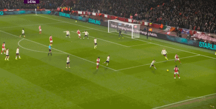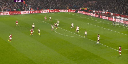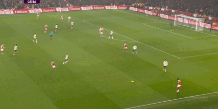 在薩卡的牽制下,右肋區(qū)域也形成了不錯(cuò)的進(jìn)攻:
