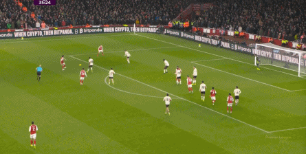 不要糾結(jié)薩卡一對一的時(shí)候,為什么沒有其他隊(duì)友上前分兵跑位,吸引對手的防守注意力?也不要糾結(jié)當(dāng)薩卡和這一側(cè)肋部形成成規(guī)模的進(jìn)攻的時(shí)候,左半扇的隊(duì)友為什么無法做到類似的事情,只能在開場16分鐘后,送出一次傳中?