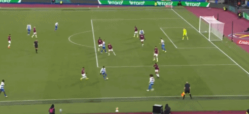 第45+10分鐘,馬加薩助攻薩默維爾破門(mén),西漢姆聯(lián)1-0女王公園巡游者
