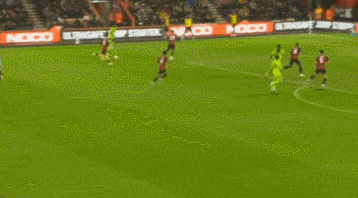 在伯恩茅斯效力時,可以看到踢邊鋒的塞門約經(jīng)常退防到本方小禁區(qū)保護后點。哪怕他沒有直接收獲防守數(shù)據(jù),但是他還能及時前頂禁區(qū)保護第二落點,限制對方的遠射可能性。